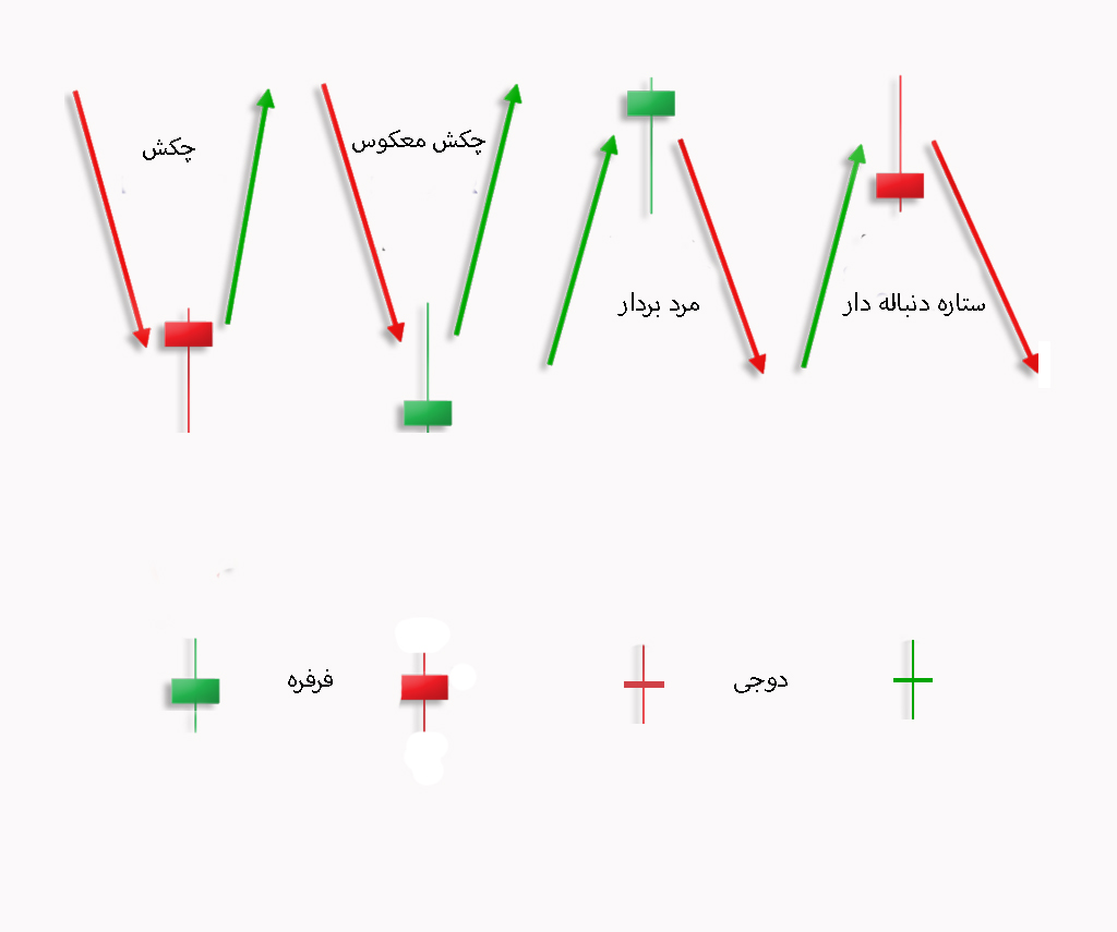 پاسخ کوتاه این است که خیر و پاسخ بلند ما معانی این کندلها را توضیح میدهد که هر کدام هم البته اسمی دارند. به این اشکال خاص الگوهای کندلی گفته میشود. در این شکل مشهورترین اشکال الگوهای کندلی دیده میشود.